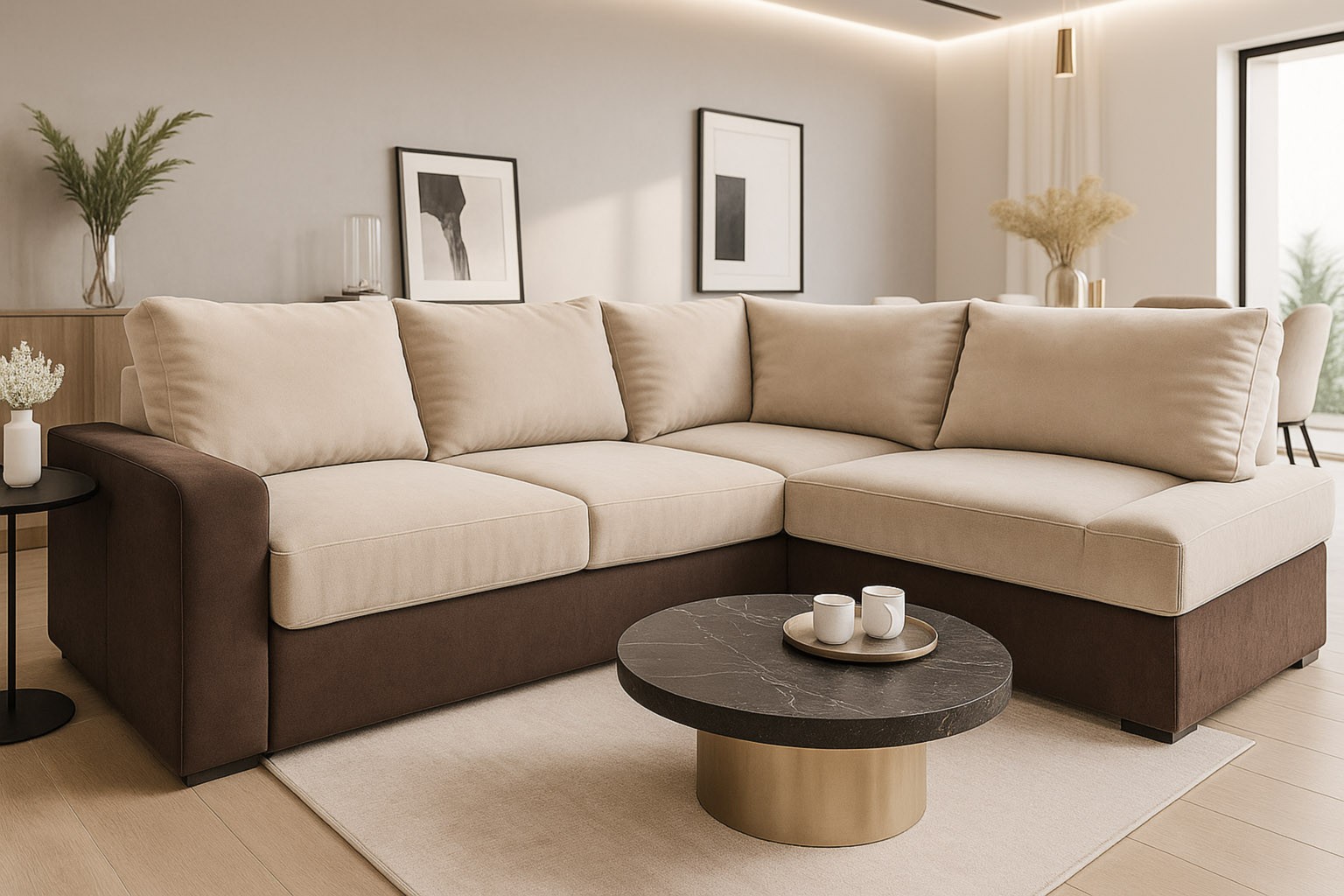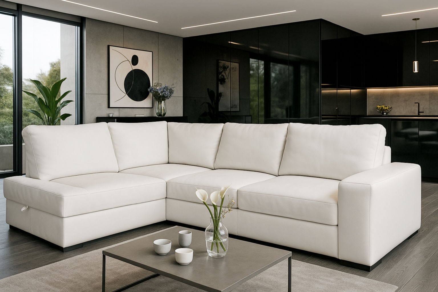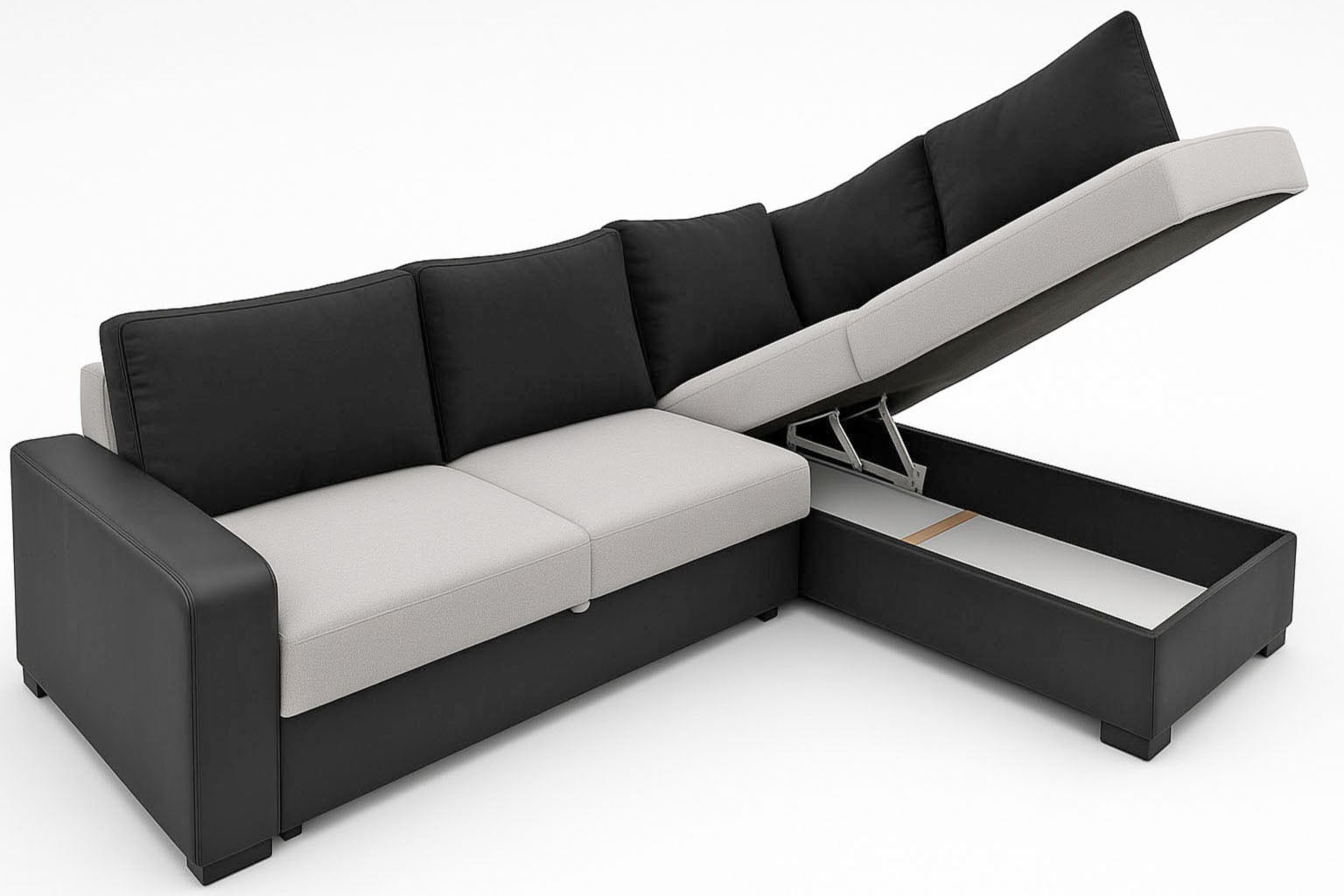 wysokość: 74-87cm / szerokość: 253-182cm / głębokość: 180cm / powierzchnia spania: 210x142cm