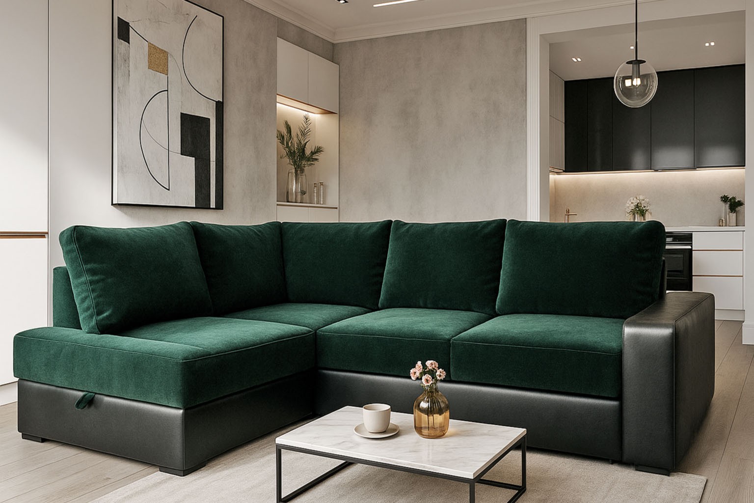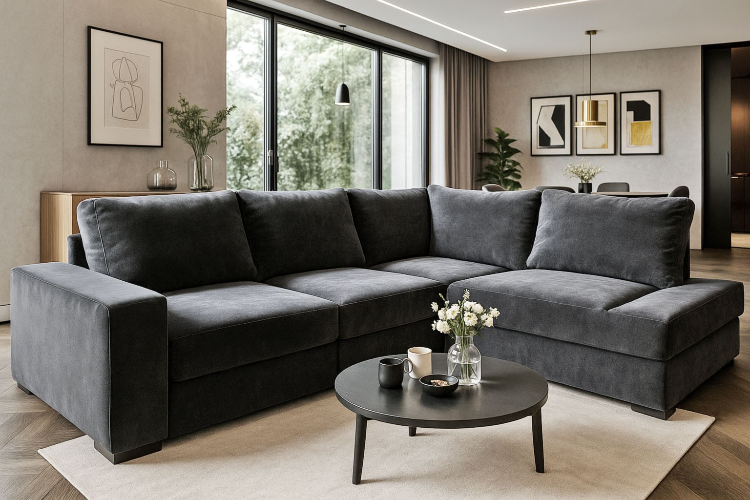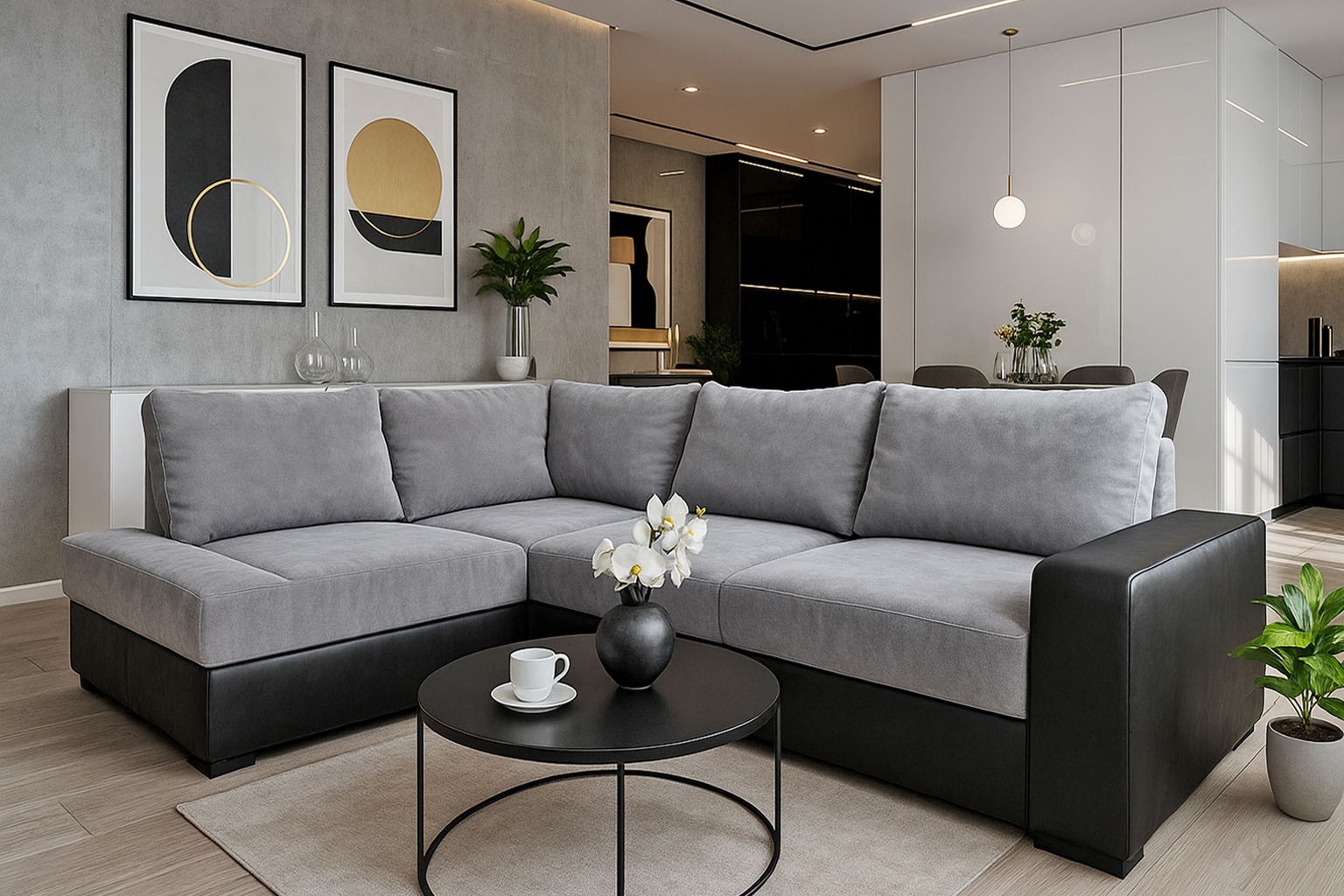 wysokość: 74-87cm / szerokość: 253-182cm / głębokość: 180cm / powierzchnia spania: 210x142cm