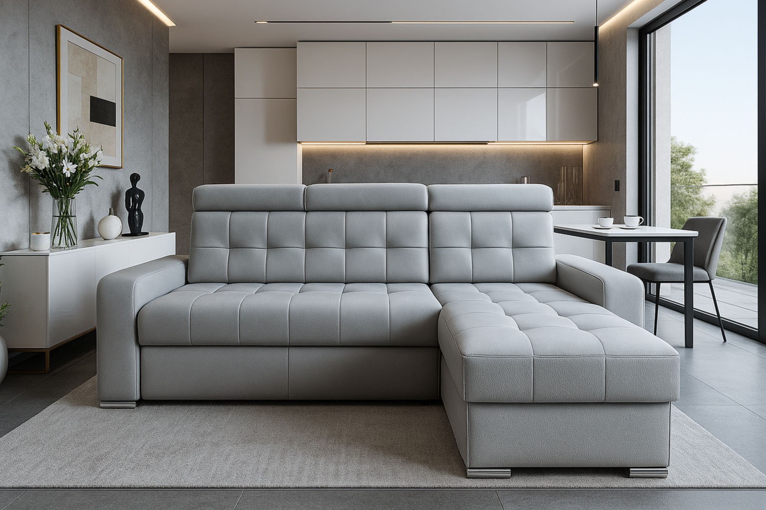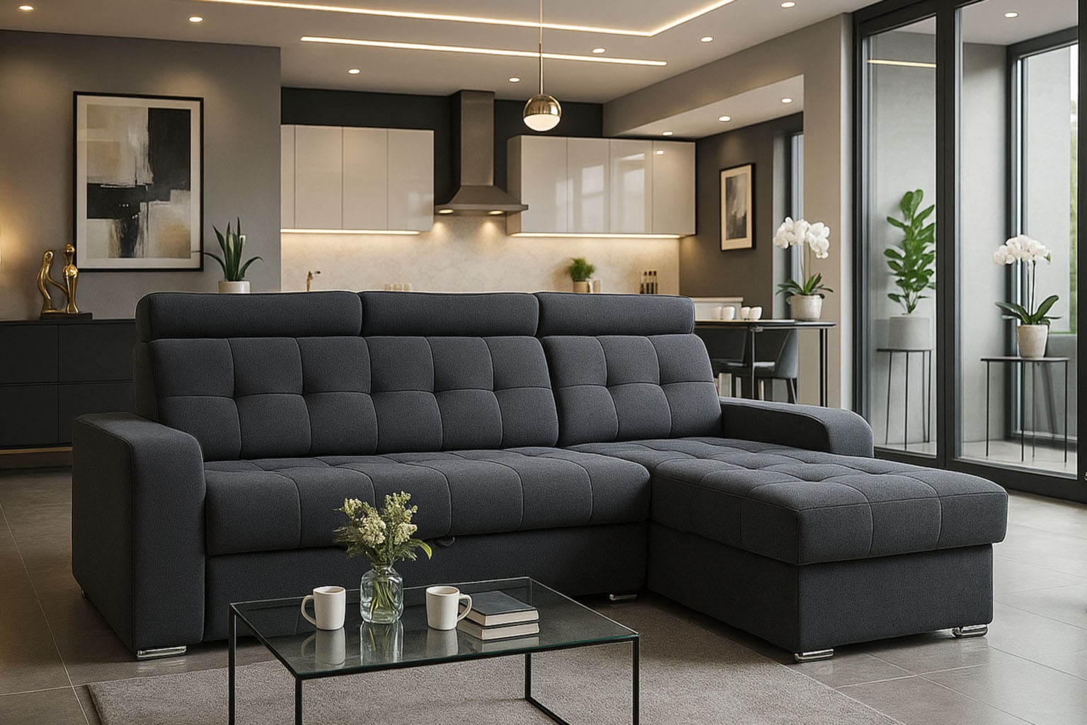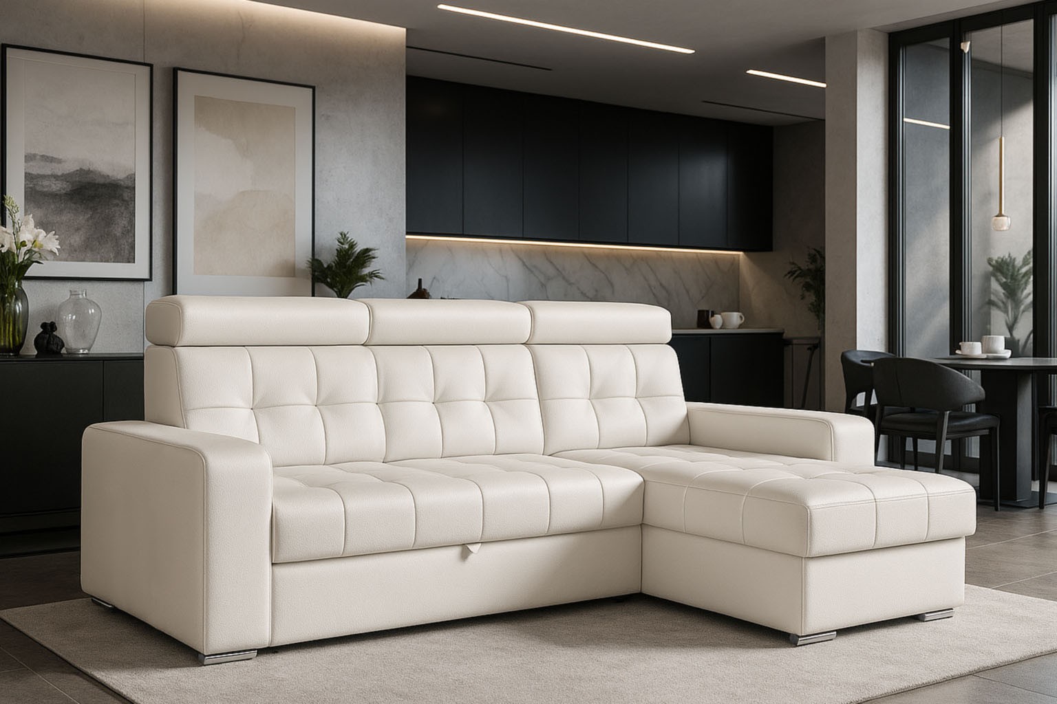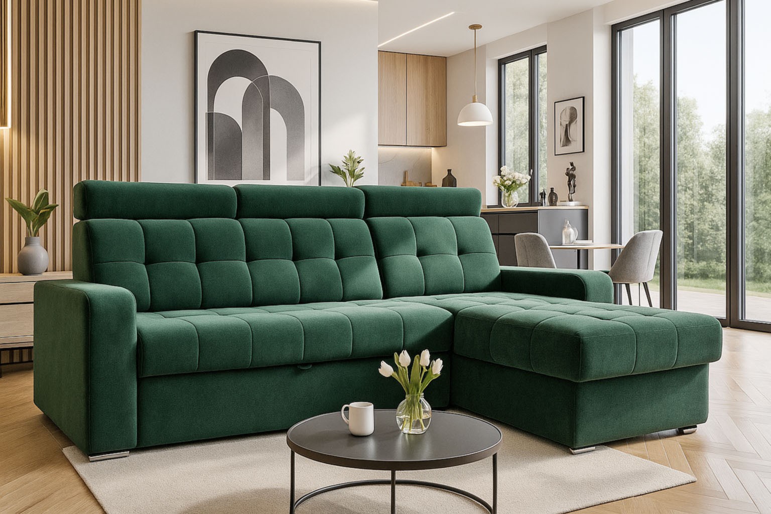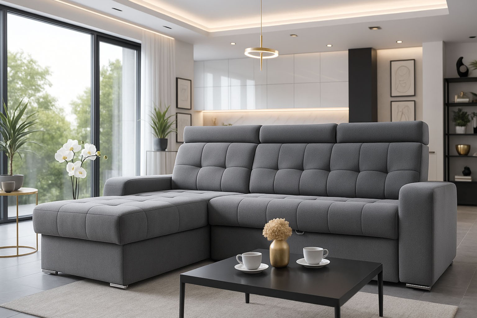 wysokość: 110cm / szerokość: 248 x 158cm / głębokość: 90cm / powierzchnia spania: 124cm x 205cm