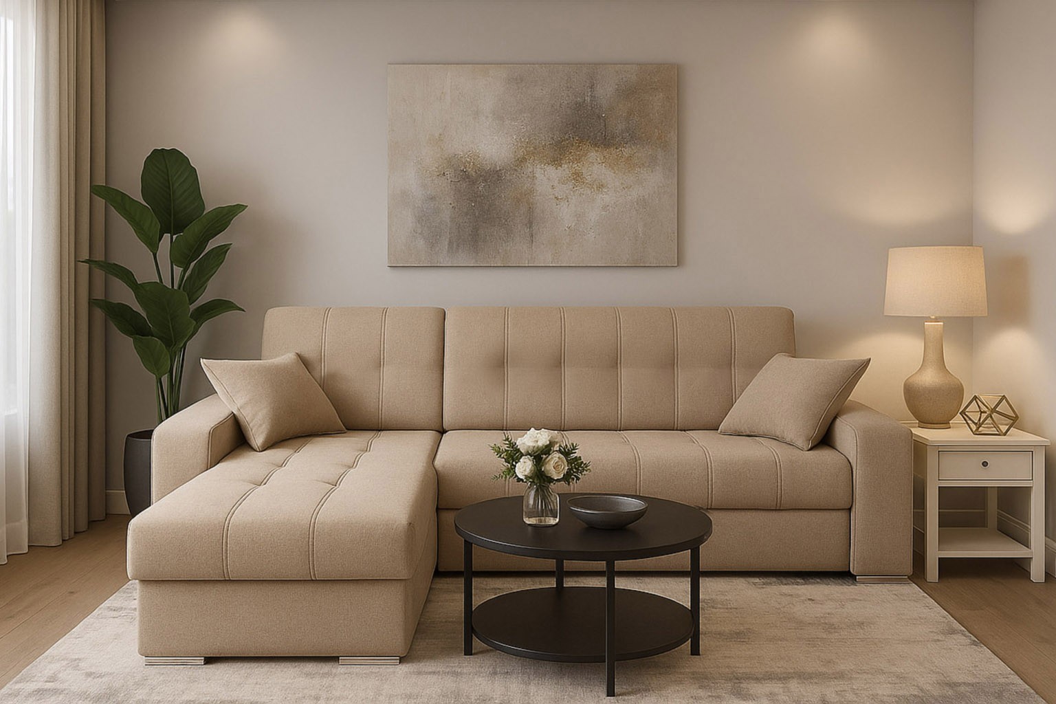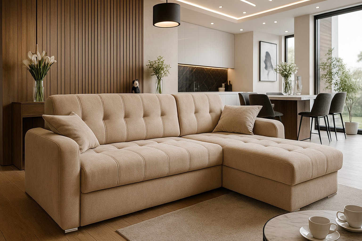wysokość: 93cm / szerokość: 248 x 158cm / głębokość: 90cm / powierzchnia spania: 124cm x 205cm
