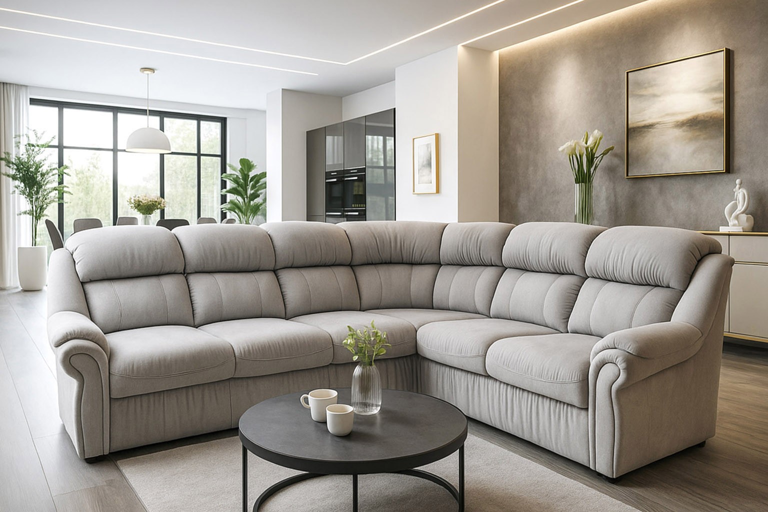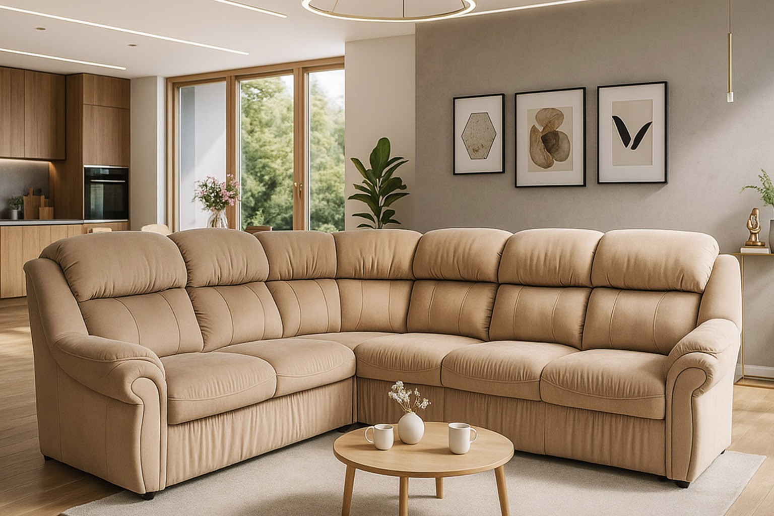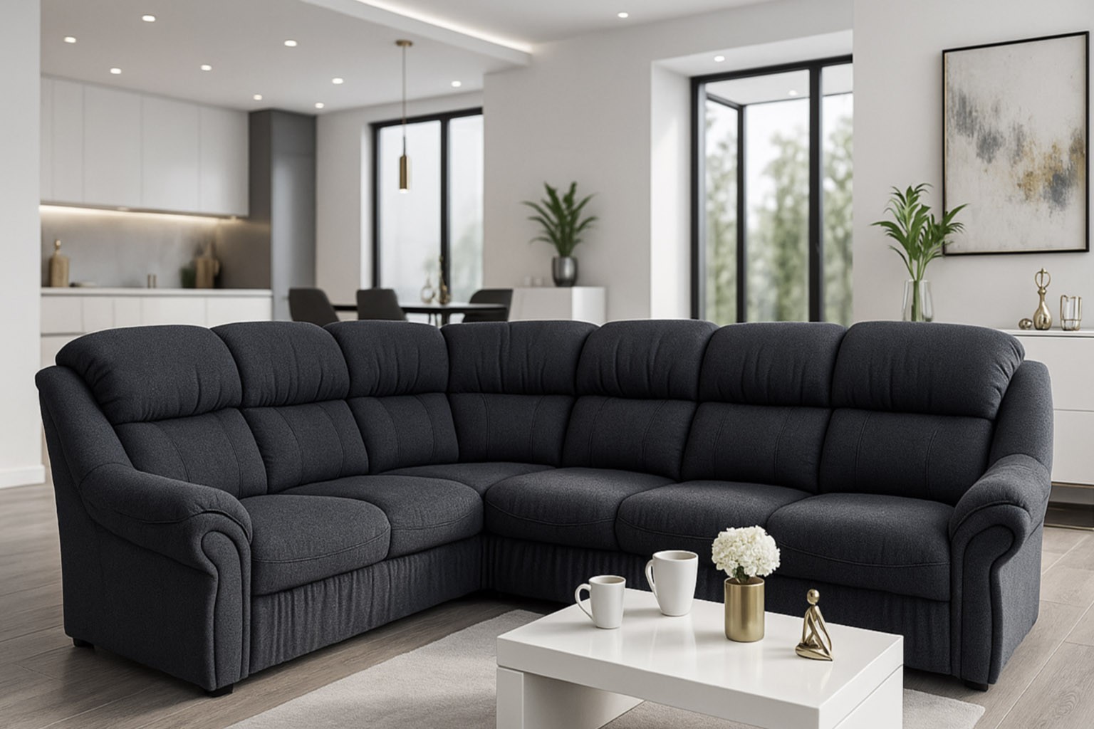 wysokość: 105cm / szerokość: 282 x 227cm / głębokość: 103cm / powierzchnia spania: 210 x 122cm
