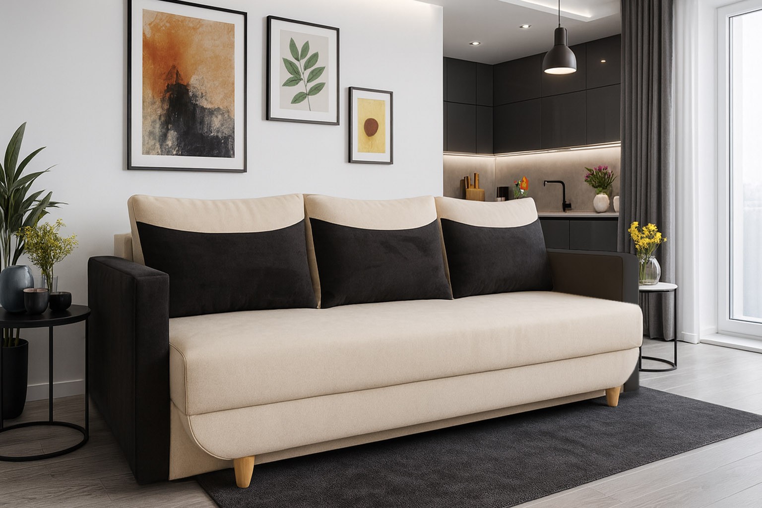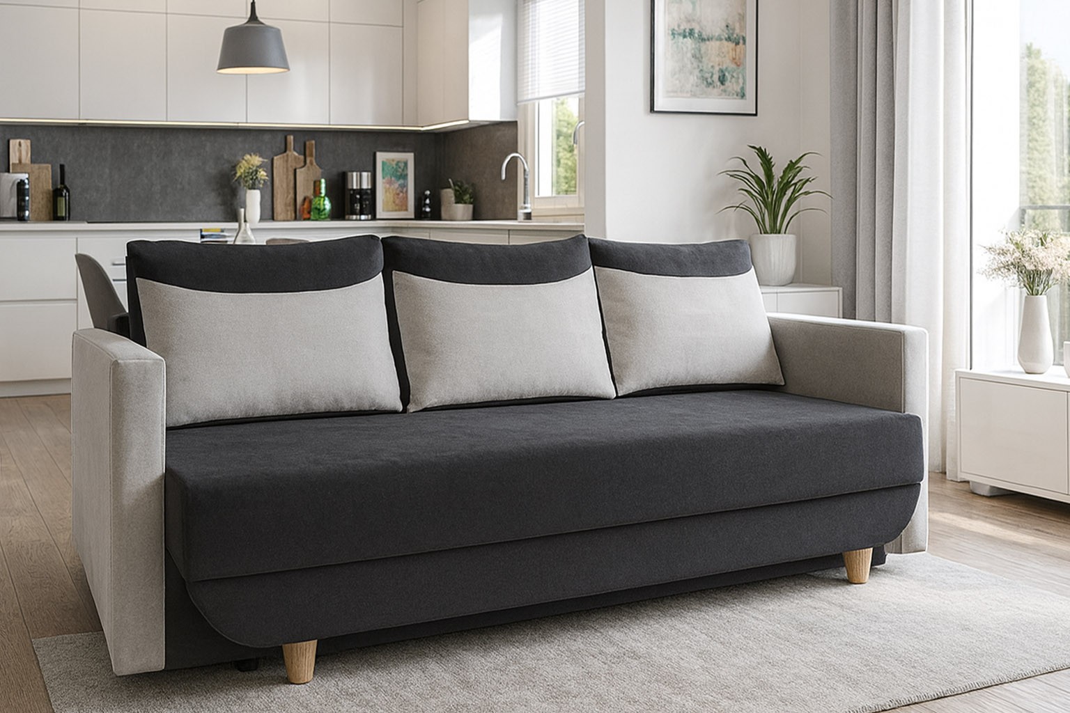 wysokość: 78-90cm / szerokość: 224cm / głębokość: 98cm / powierzchnia spania: 198cm x 148cm