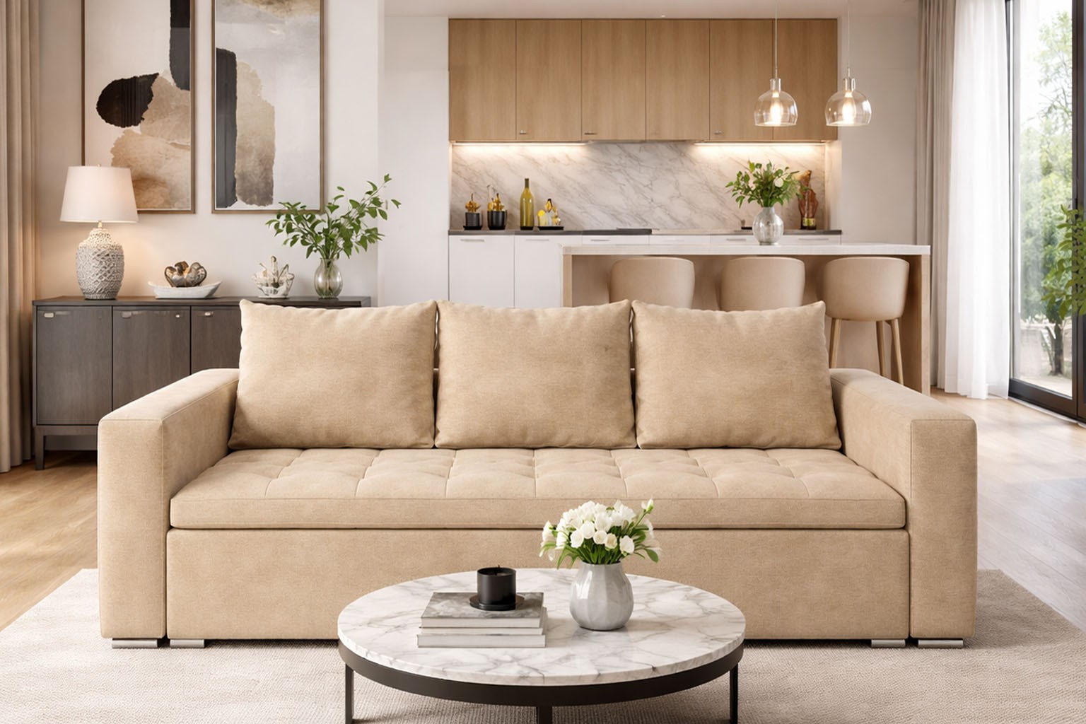 szerokość: 246cm / głębokość: 100cm / powierzchnia spania: 140cm x 200cm