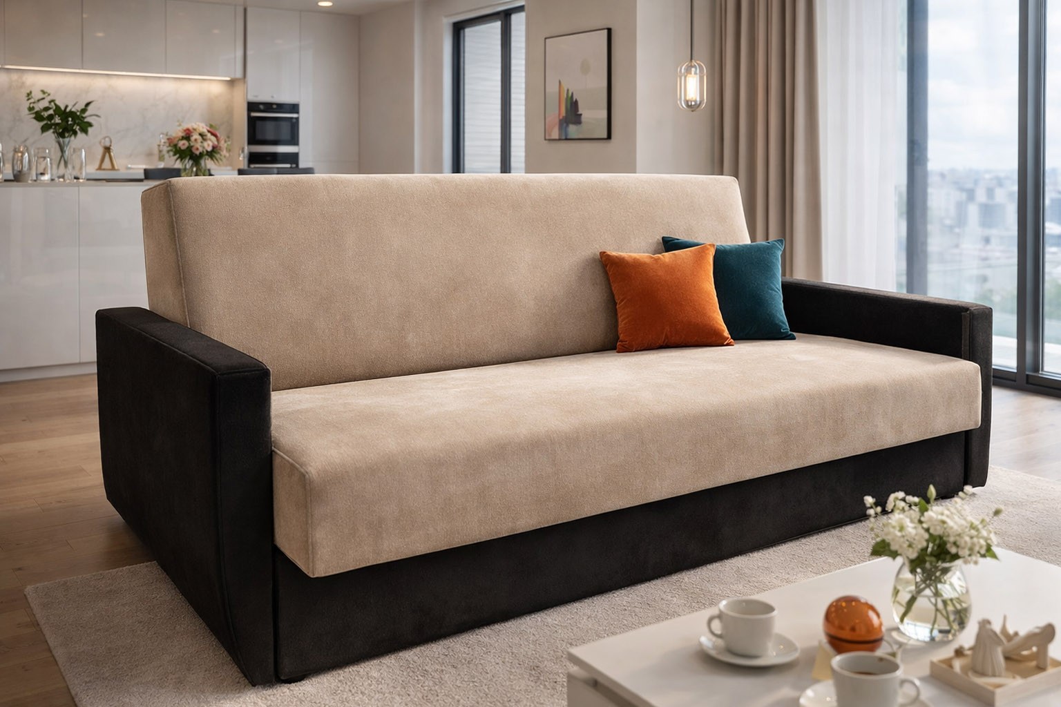 wysokość: 90cm / szerokość: 220cm / głębokość: 98cm / powierzchnia spania: 196cm x 120cm