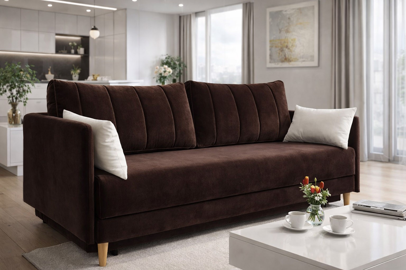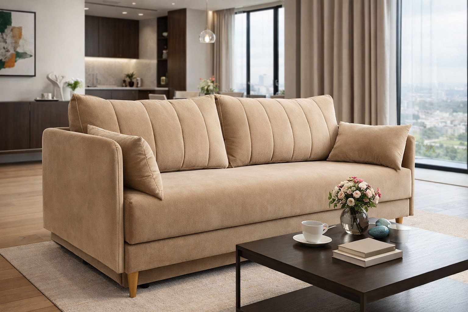 wysokość: 72-92cm / szerokość: 210cm / głębokość: 102cm / powierzchnia spania: 148cm x 196cm
